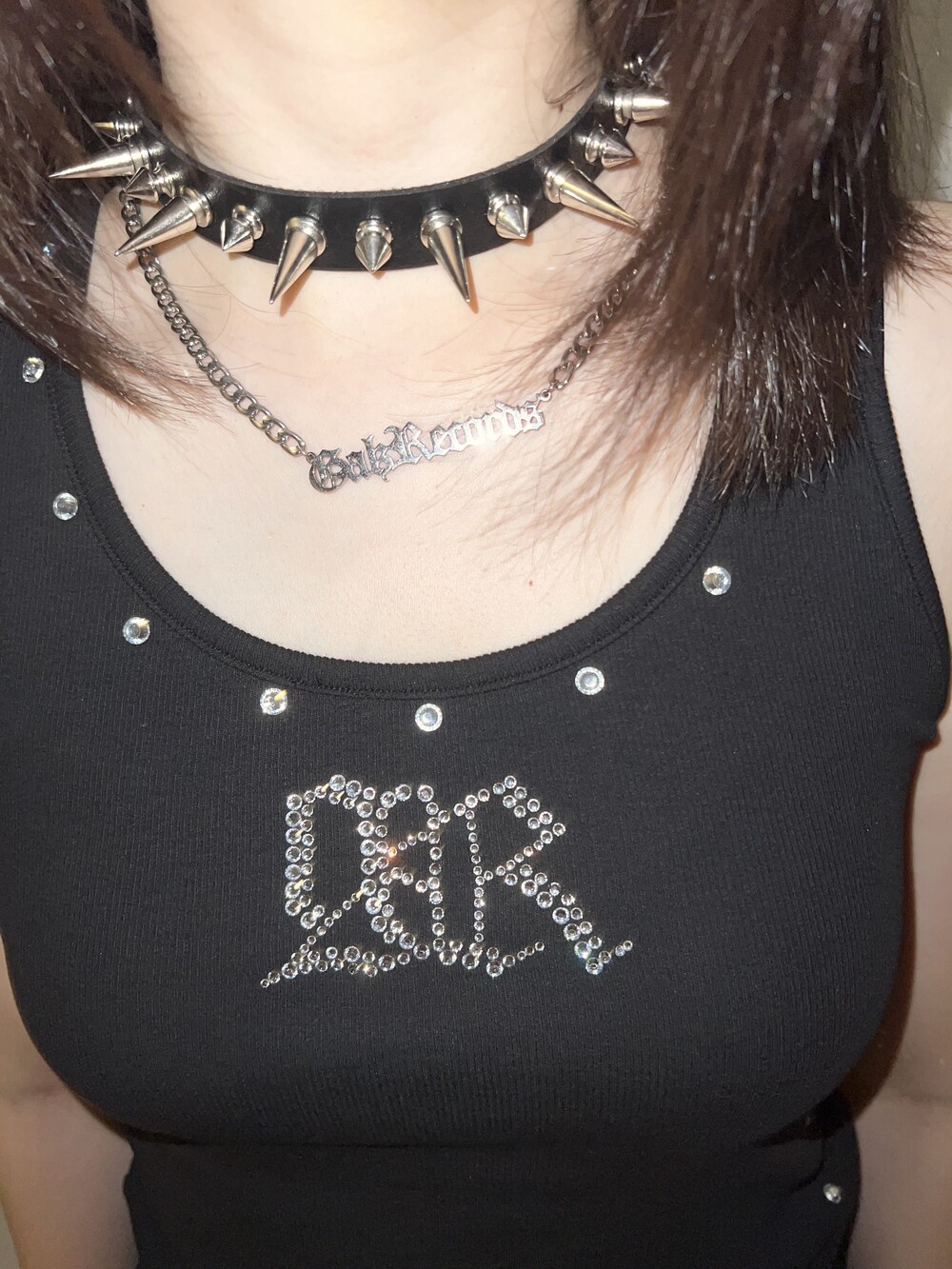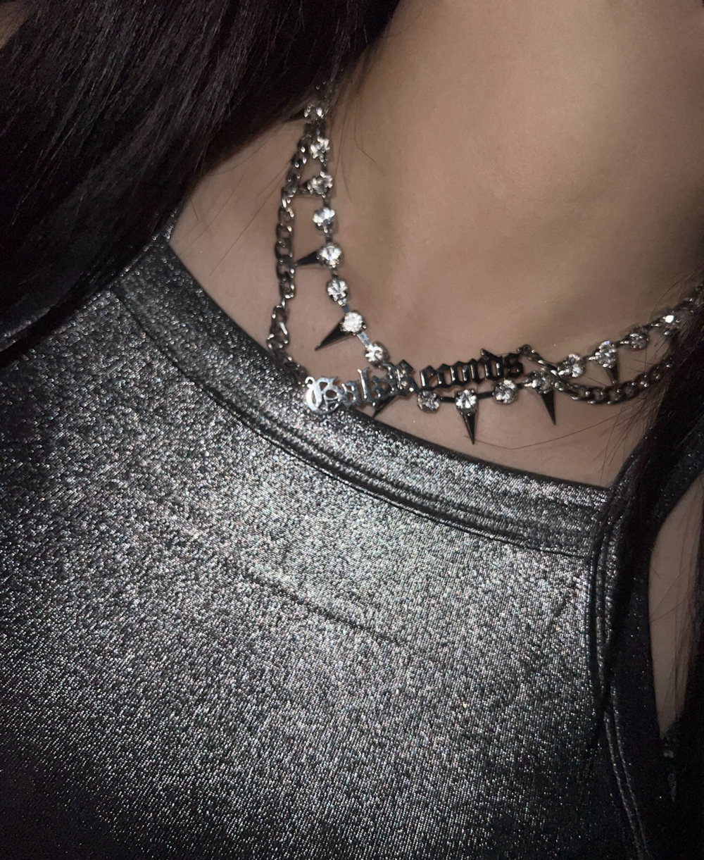 A necklace from GalzRecords that captures the 2000s vibe with its lettered design.