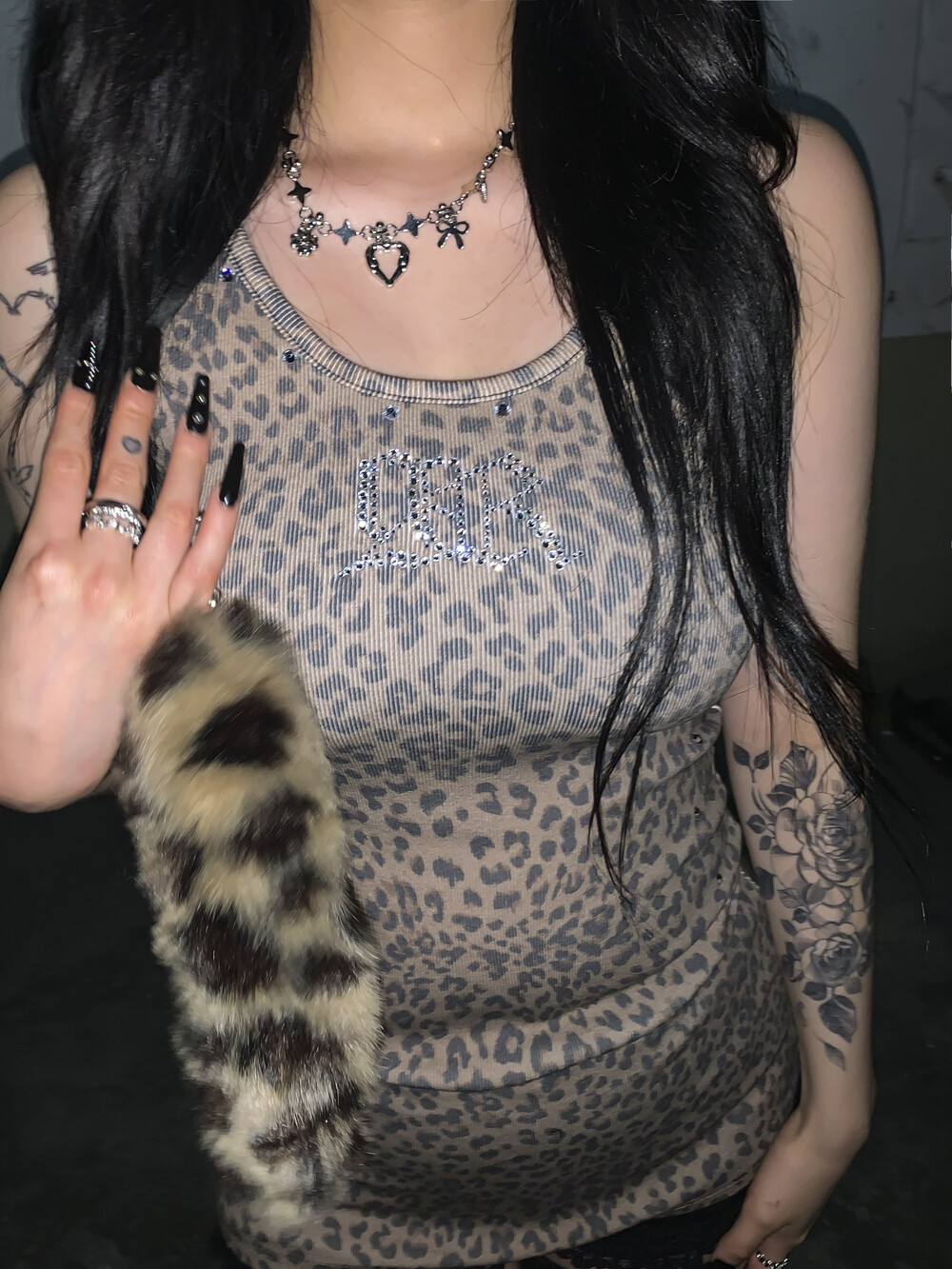 The newly added Brown Leopard color features a subtle-toned leopard pattern accented by sparkling hotfix rhinestones along the neckline, center chest, and waist. These details enhance the body's lines and curves, creating a visually slimmer and more refined look.